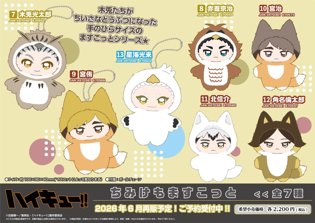2/13結單★排球少年★動物裝吊飾娃娃vol.1/2/3再販