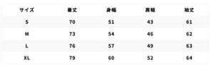 尺寸表: